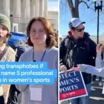The Supreme Court is hearing arguments this week as to whether or not men should be able to participate in women’s sports, so this lib decided she’d film a gotcha moment on the "hateful" protesters who want to protect women’s sports from men in skirts.