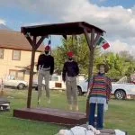 Houston house decorates for Halloween with Mexican man standing next to two executed Trump supporters