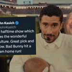 Let’s check out the reactions to that, uh, Halftime Show, starting with … John Kasich?