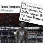 This is amazing stuff. The Texas Rangers put up a statue of a Texas Ranger and now The Athletic (New York Times) is making a stink about it.