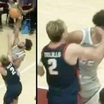 College basketball player gets posterized, then decks opponent in the face for dunking on him