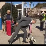 Democrat who wished death on GOP opponent kicks foot at dog outside polling station