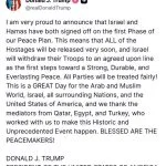 Israel and Hamas ‘Signed Off’ on First Phase of Peace Plan, Trump Announces: ‘ALL of the Hostages Will Be Released Very Soon’