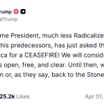 Trump Says Iranian President Requested Ceasefire But US Won’t ‘Consider’ Until Hormuz Strait Is Open: ‘Until Then, We Are Blasting’